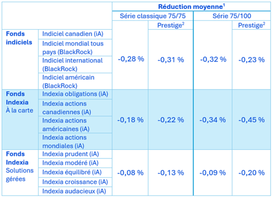 Bonne nouvelle! Nous avons réduit le ratio de frais de gestion (RFG) de 13 fonds distincts, soit 4 fonds indiciels et tous les fonds de la famille Indexia! 🎉